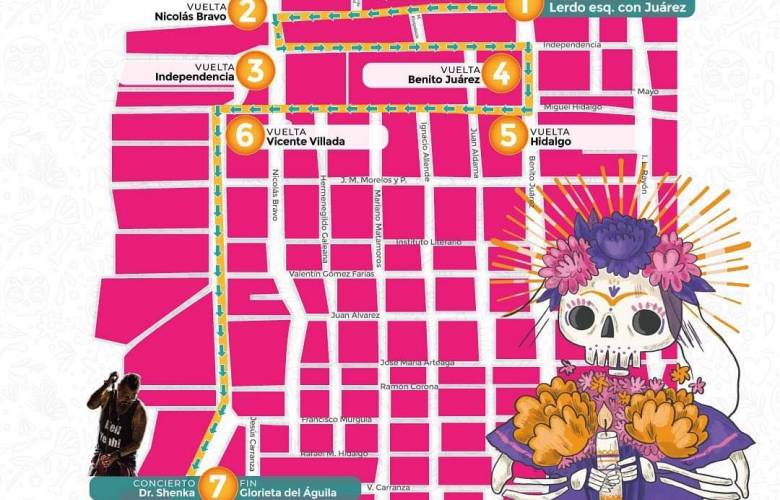La ruta que realizará el contingente iniciará en Lerdo esquina con Juárez y avanzarán hacia Nicolás Bravo, para seguir en avenida Independencia para después continuar hacia Juárez rumbo a Hidalgo hasta Villada para tomar Colón donde terminará en la Glorieta del Aguila.