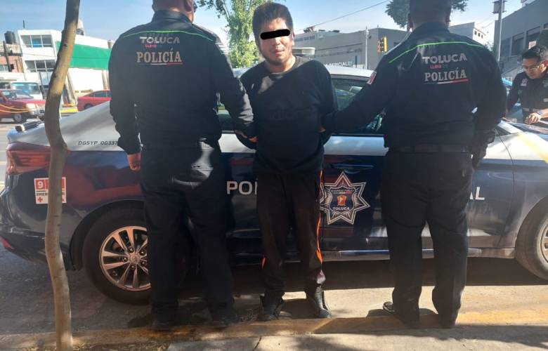 Un sujeto fue detenido por elementos de la Dirección General de Seguridad y Protección de Toluca por arrebatar, con lujo de violencia, el bolso a una mujer en la delegación de San Pedro Totoltepec.