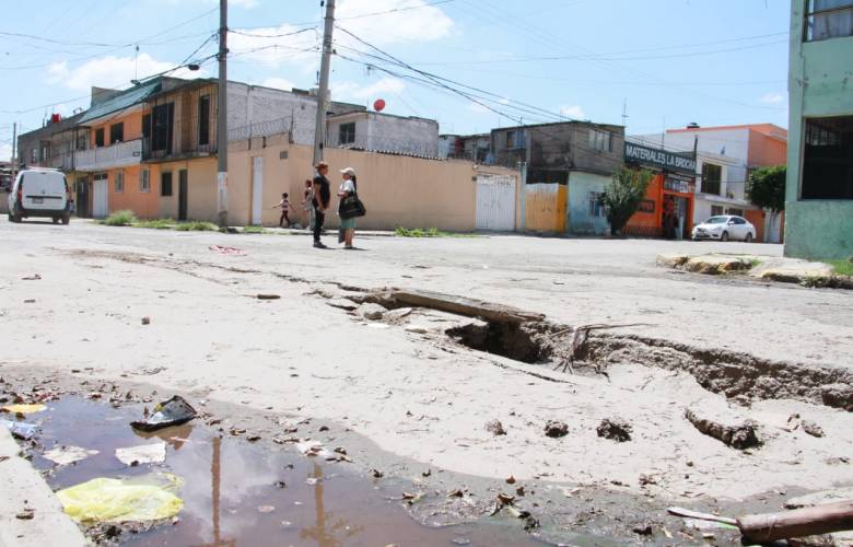 El colapso de infraestructura de drenaje registrada hace cinco años en la calle Hierro de la colonia Rústica Xalostoc, provocó un socavón con hundimientos que ya superan los cinco metros de profundidad y aunque los vecinos consiguieron tubería por parte del gobierno estatal, aún no se realiza la obra para cambiar la red, por lo que esperan que el Ayuntamiento atienda, al existir riesgo para 70 familias de la zona, donde hay tuberías de gas natural, afirmó el diputado Emiliano Aguirre Cruz.