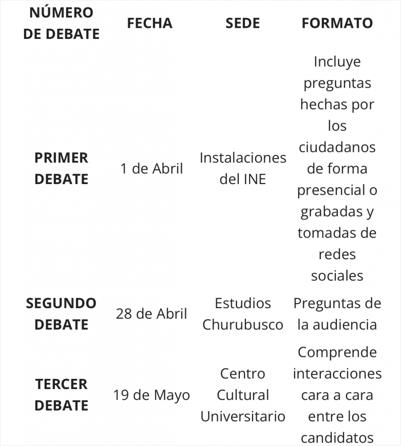 Las sedes seleccionadas, así como los formatos para cada debate, aún deberán ser aprobados por el Consejo General del INE.
