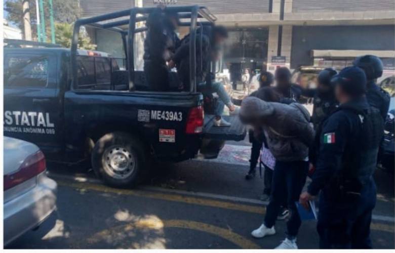 Resultado de lo anterior, sobre el Boulevard Isidro Fabela, esquina con avenida 5 de mayo, fueron aprehendidos Germán "N" de 35 años, Ezequiel "N" de 29, Jorge "N" de 21, Britanny "N" de 22, Rosa "N" de 31, Iván "N" de 35, Steverdens "N" de 31, Alfonso "N" de 31, Sergio "N" de 18, José "N" de 45 años y dos menores de edad; estos 12, al parecer relacionados con los delitos de extorsión, cobros de piso, narcomenudeo y robo a transeúnte.