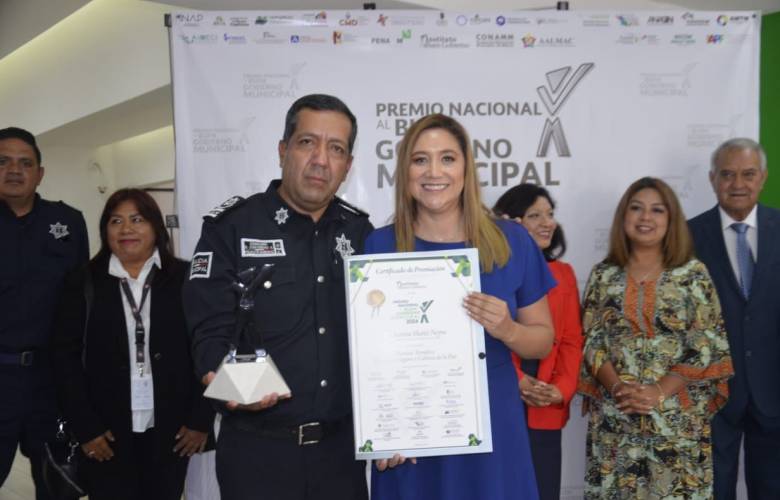 En reconocimiento a los logros alcanzados en cuanto a reducción de la inseguridad y por la forma en que se ha mejorado la calidad de vida de las y los habitantes del municipio, la presidenta municipal de San Mateo Atenco, Ana Muñiz Neyra, recibió el Premio Nacional al Buen Gobierno Municipal 2024, en la categoría de Municipio Seguro y Cultura de la Paz.