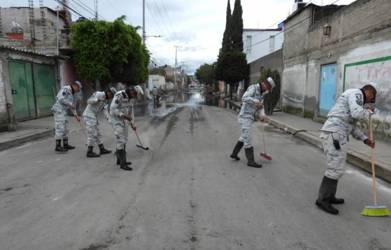A partir de este fin de semana se activa un programa de limpieza y desinfección en el que las secretarías de la Defensa Nacional (Sedena) y de Marina, así como del municipio de Chalco limpiarán 28 calles de las colonias Jacalones y Culturas de México.
