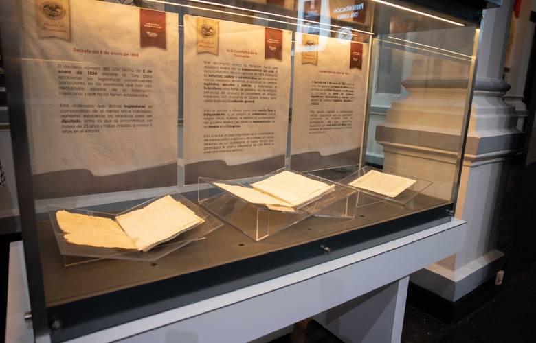 El Archivo del PJEdomex expuso una valiosa colección de documentos históricos bajo su resguardo, destacan las Constituciones de 1827, 1861, 1870 y 1917; un escudo del Estado de México que data de 1941, y varios decretos clave, como el de 1824 sobre la Ley para establecer las legislaturas constituyentes particulares y el del 2 de marzo de 1824 que marcó el inicio del gobierno mexiquense. También exhibió un estatuto provisional para el gobierno interior del Estado de México de 1855, la Ley Orgánica Provisional para el Arreglo del Estado Libre, Independiente y Soberano de México de 1824, y un ejemplar del Acta Constitutiva de la Federación.