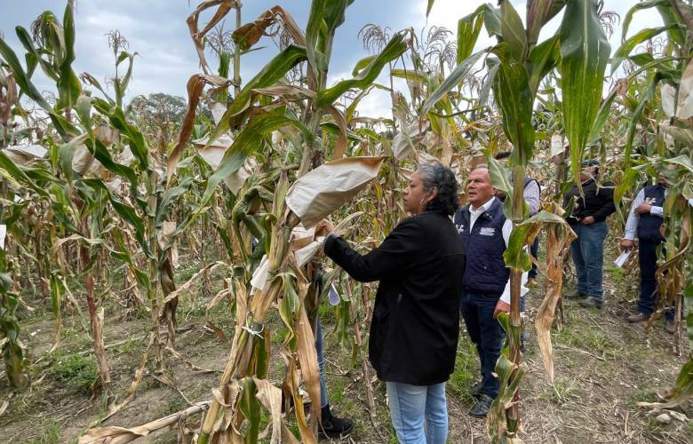 María Eugenia Rojano Valdés, Secretaria del Campo visitó esta parcela, cuyo propósito es la regeneración, incremento y conservación de dichas especies para su resguardo como patrimonio biocultural del Estado de México dentro de sus cámaras en frío, impulsando así la identificación y selección de maíces nativos potenciales.