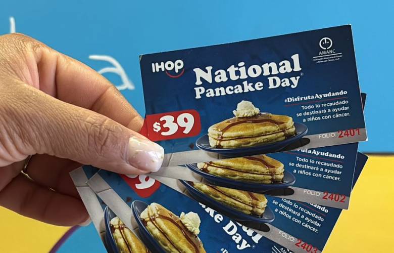 Por lo cual, en conjunto con la cadena de restaurantes IHOP, en sus sedes ubicadas en Metepec, Atizapán de Zaragoza, Naucalpan y Tlalnepantla, ofrecerá el paquete de dos pancakes de mantequilla a precio especial de 39 pesos, cuyo monto recaudado se destinará íntegramente a favor de los menores.