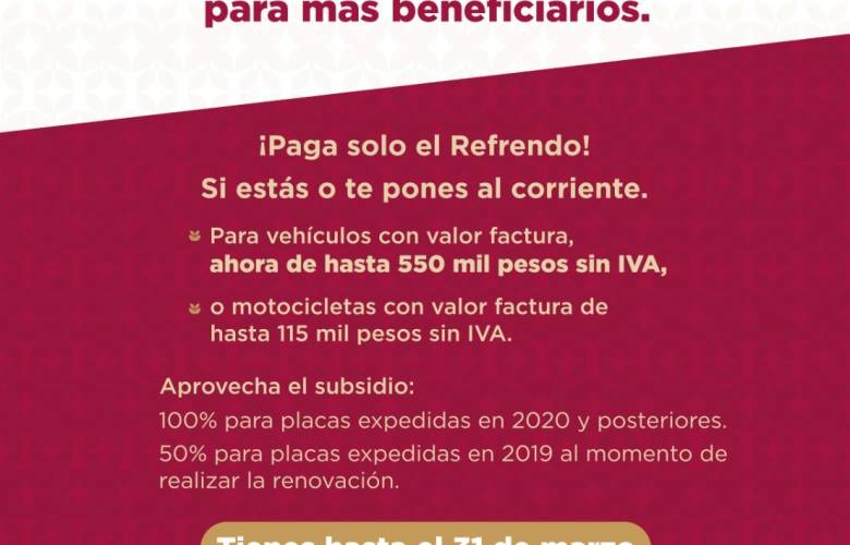 -El Programa de Subsidio a la Tenencia Vehicular 2025 estará vigente del 1 de enero al 31 de marzo de 2025