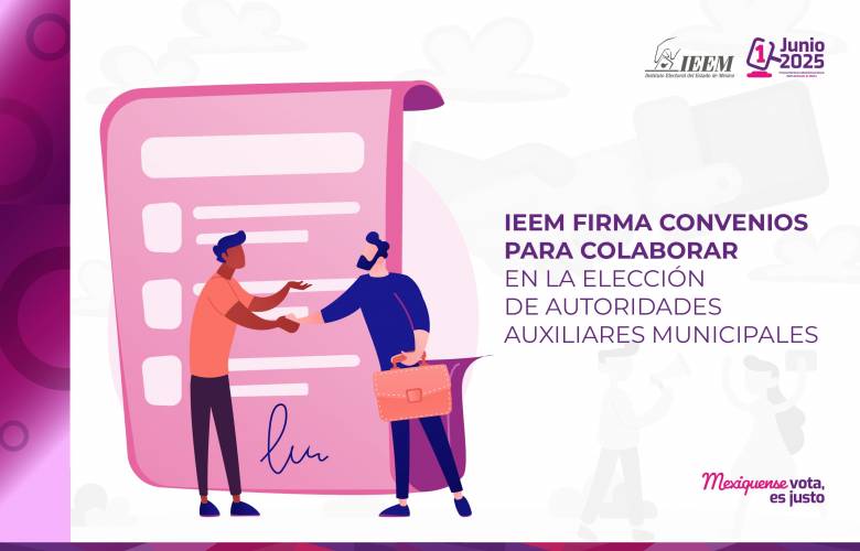 El Instituto Electoral del Estado de México (IEEM) firmó seis convenios de colaboración para apoyar en la organización, desarrollo y supervisión de las elecciones de autoridades auxiliares de los ayuntamientos de: Chalco, Huixquilucan, Naucalpan, Toluca, Zinacantepec y Atizapán de Zaragoza.