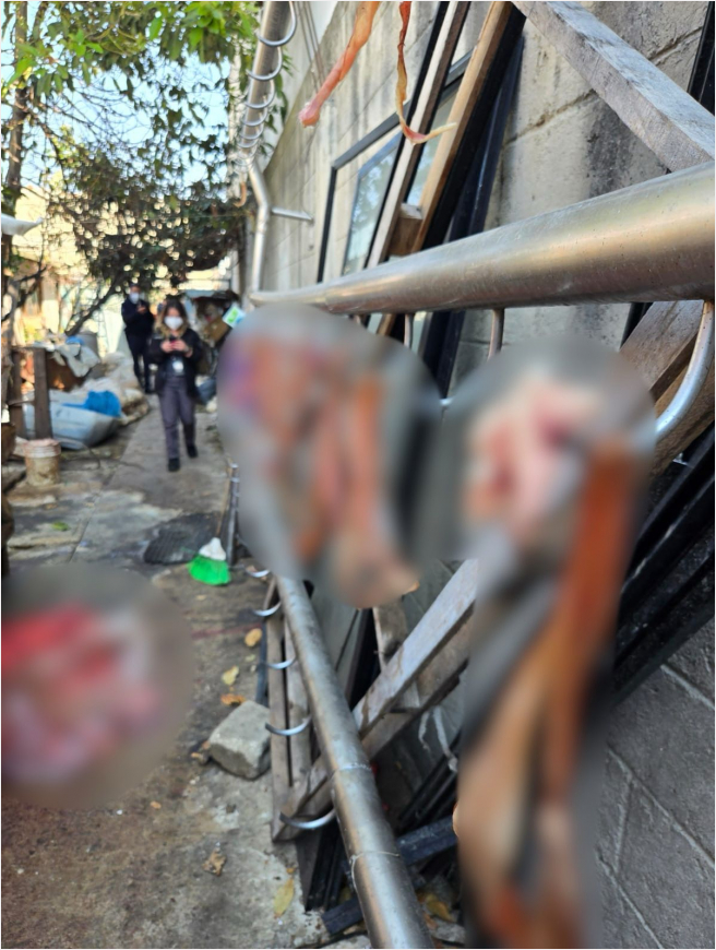 El operativo se desplegó en la calle Narciso Mendoza, en atención a una denuncia por maltrato animal en un predio de la zona. Los vecinos denunciantes señalaron que todos los días observaban a un sujeto ingresar con costales y perros de diversas razas a su domicilio y no los volvían a ver. Además, de ese predio emanaba siempre un olor fétido que se inundaba toda la calle.