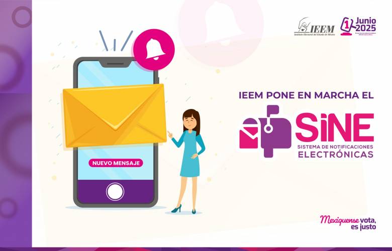 A través del Sistema de Notificaciones Electrónicas (SiNE), el Instituto Electoral del Estado de México (IEEM) mantendrá al tanto de las etapas del Proceso Electoral Judicial Extraordinario 2025 a las personas postulantes a diversos cargos del Poder Judicial del Estado de México.
