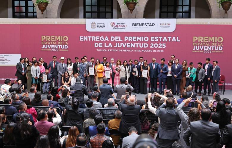 La gobernadora del Estado de México, Delfina Gómez Álvarez, distinguió con el Premio Estatal de la Juventud 2025 a cinco integrantes de la comunidad de la Universidad Autónoma del Estado de México (UAEMéx), el cual reconoce la trayectoria, el compromiso social y las aportaciones de las y los jóvenes, resaltando su compromiso con la edificación de las mejores condiciones para que las juventudes mexiquenses sigan creciendo y desarrollando sus capacidades.