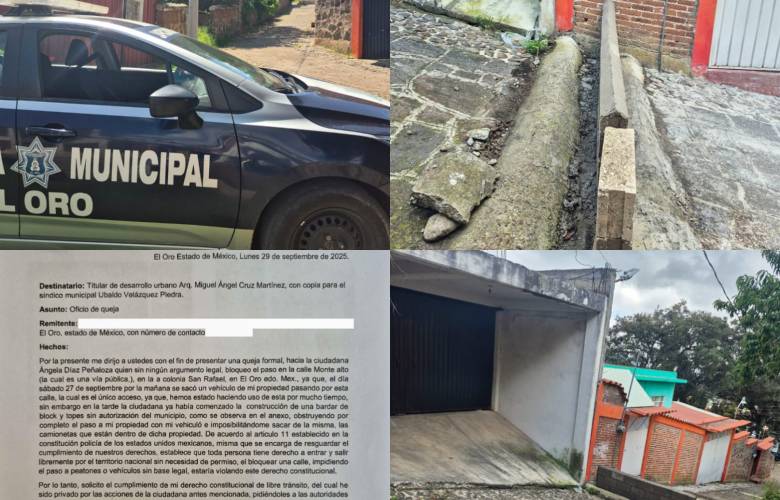 Vecinos de la colonia San Rafael, en el municipio de El Oro, denunciaron que la presidenta del DIF municipal, Ángela Peñaloza, mandó construir una barda que bloquea por completo una calle de acceso público, impidiendo el paso de vehículos y peatones.