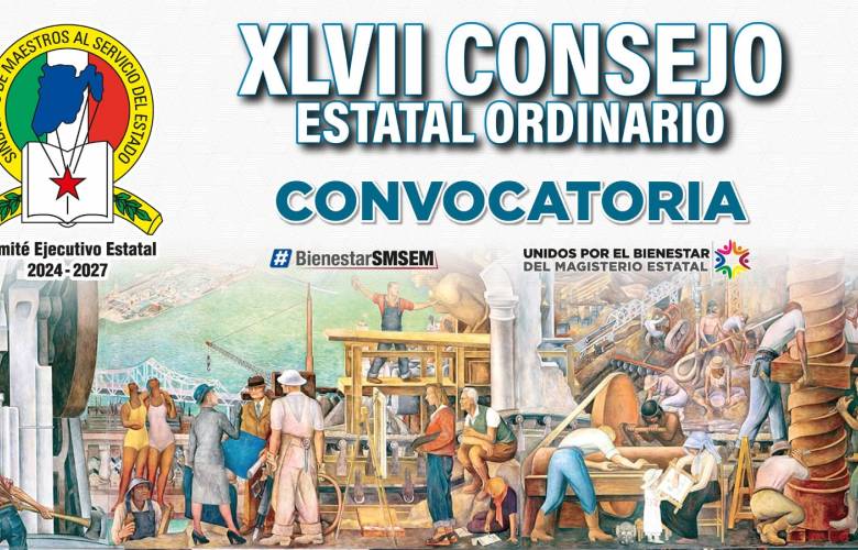 El Sindicato de Maestros al Servicio del Estado de México (SMSEM), encabezado por su Secretario General, Jenaro Martínez Reyes, emitió la convocatoria al XLVII Consejo Estatal Ordinario, que se llevará a cabo los días 29 y 30 de octubre en el Auditorio “Prof. Agripín García Estrada”, en Santa Cruz Atzcapotzaltongo, Toluca.