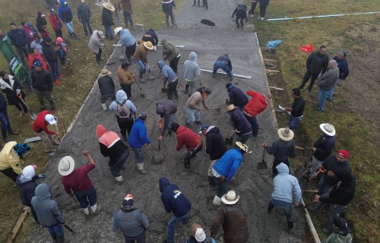 Pese al intenso frío y la neblina, la jornada reunió a vecinas y vecinos que participaron en la mejora de un camino comunal con concreto hidráulico, ya que esta obra fortalece la movilidad y contribuye al bienestar de las familias de la zona.